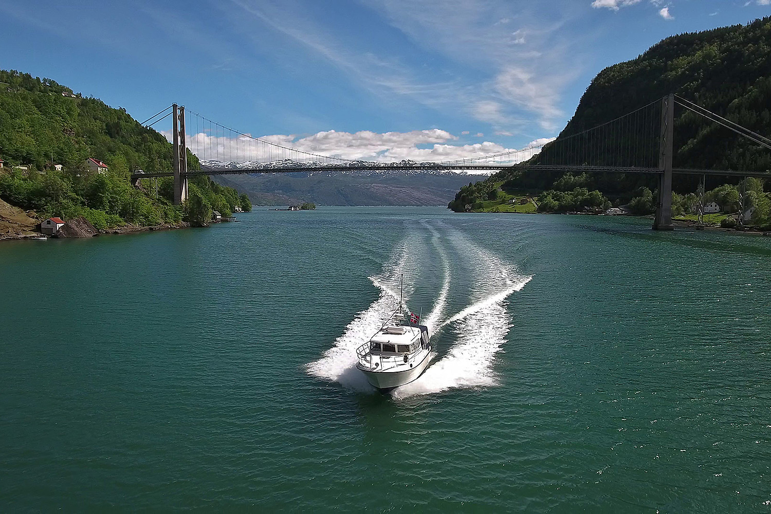 Hardangerfjorden har alltid vært den viktigste ferdselsveien i Hardanger. Hardingar var og er gode sjøfolk. Før veiane kom langs fjorden var sjøveien den enkleste veien mellom grendene, og femdeles er fjorden ofte den enkleste veien – og uten tvil den flotteste. Her får man virkelig se hele fjordlandskapet. Folgefonna ligger som et teppe på fjellene, flotte fruktgårdar på rekke og rad langs fjorden, og et par nes utenfor Jondal ser man rett til havs!